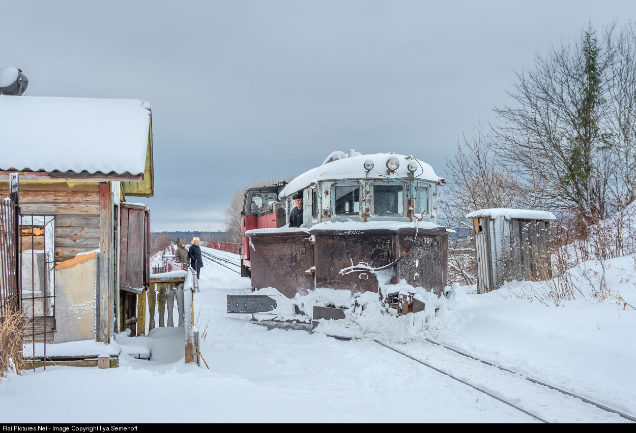 | PS1 narrow gauge snowplow cleans tracks of Karinskaya railway. Snowplow PS1 was produced in the 50s of the XX century by the Demikhov plant (DMZ) in Moscow region. PS1 have an all-metal body. Snowplows PS1 were equipped with a pneumatic drive of dumps and knives. The snowplow is worked, supply by air and pushed by a locomotive. |