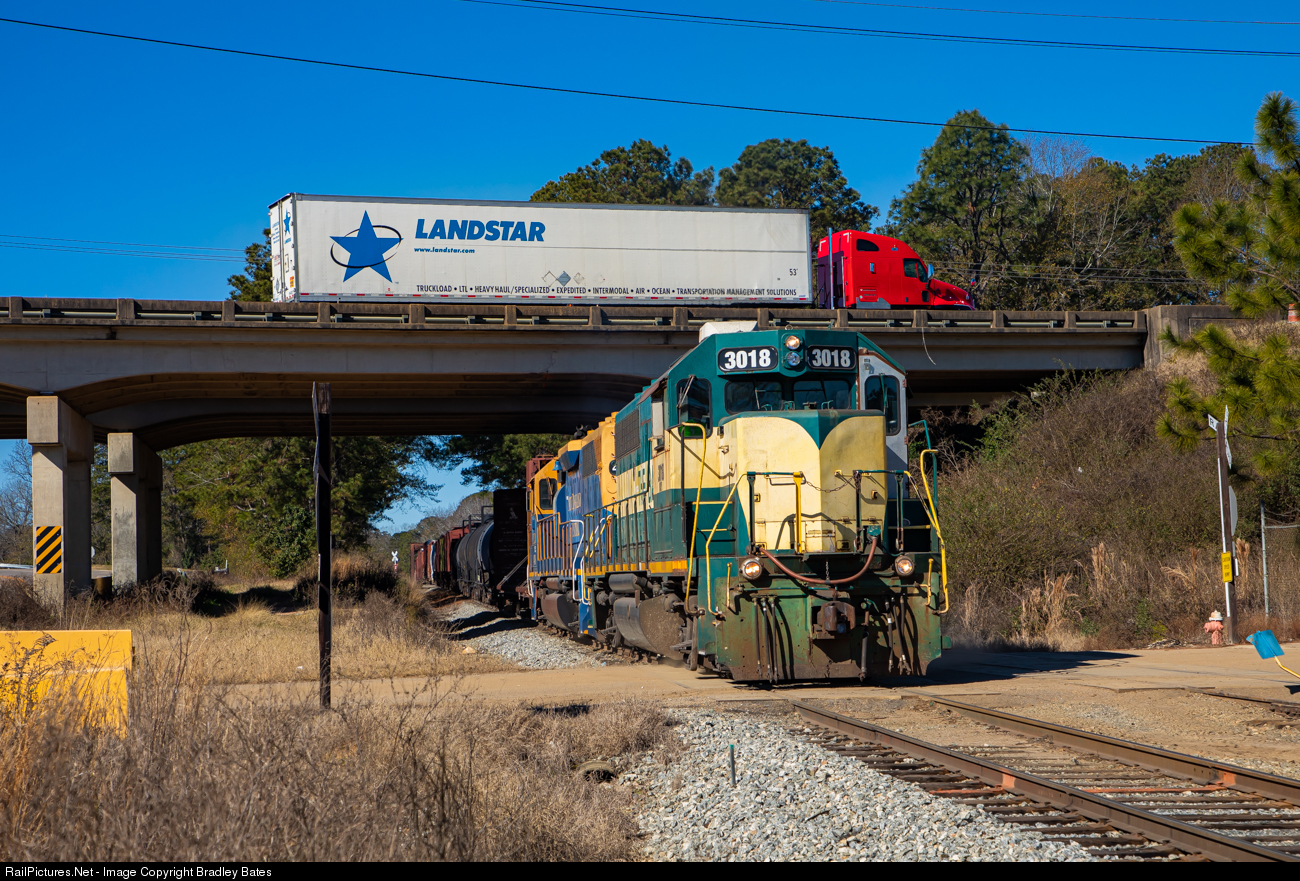 The Bay Line Railroad's Hilton Turn heads east out of Dothan, AL., on their way to interchange with the Hilton & Albany and Chattahoochee Industrial Railroads at Hilton, GA.