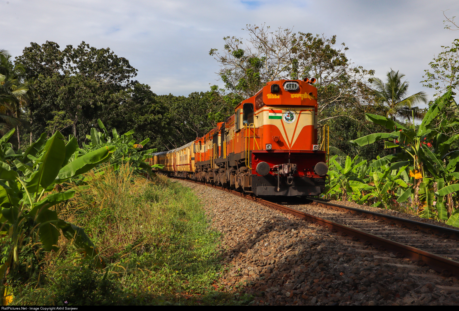 | Ernakulam Alco twins 16564 & 14051 emerges from the greenery near ezhukone with Madurai Punalur express in tow |