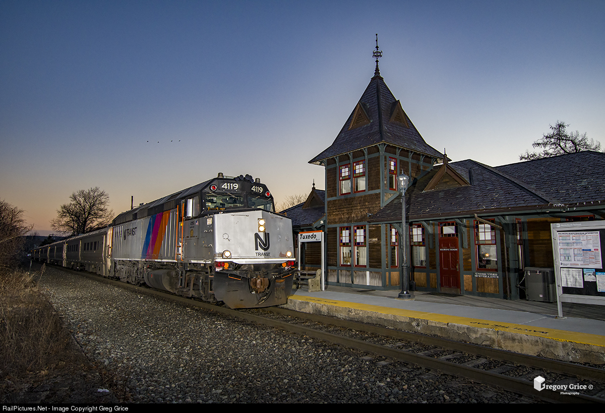 New Jersey Transit F40PH-2CAT #4119 leads Port Jervis Line train 51 into its 5th stop at the Tuxedo Station as the sun sets on January 21st, 2020. Originally constructed in 1885 and rebuilt in 2009, this former Erie Railroad station is the only stop along the line that retains it's original structure at the current station site. |