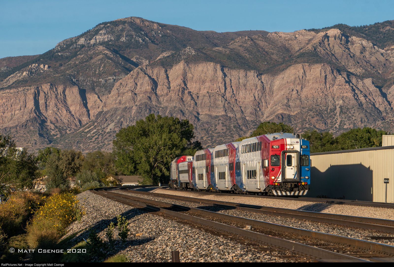 Wasatch Front. A southbound FrontRunner train is approaching the grade crossing at W 3300 S St, having left its origin station, Ogden, just a few minutes prior.