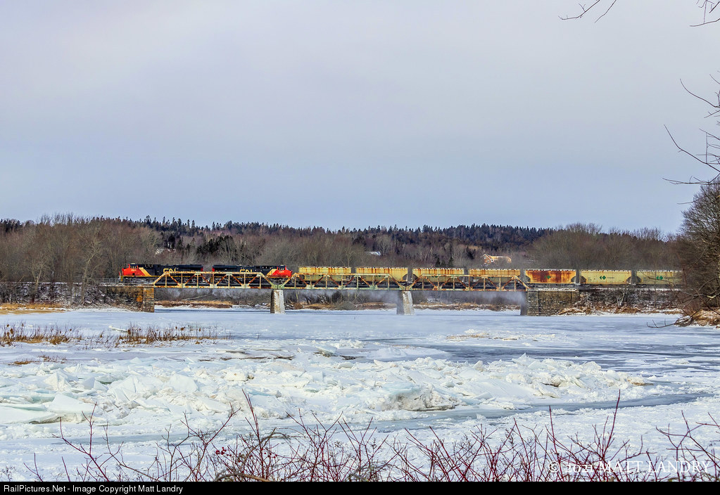 On a cold winter afternoon, potash train 730 crosses the frozen Hammond River, about 10 miles from it's final destination of Saint John, New Brunswick.