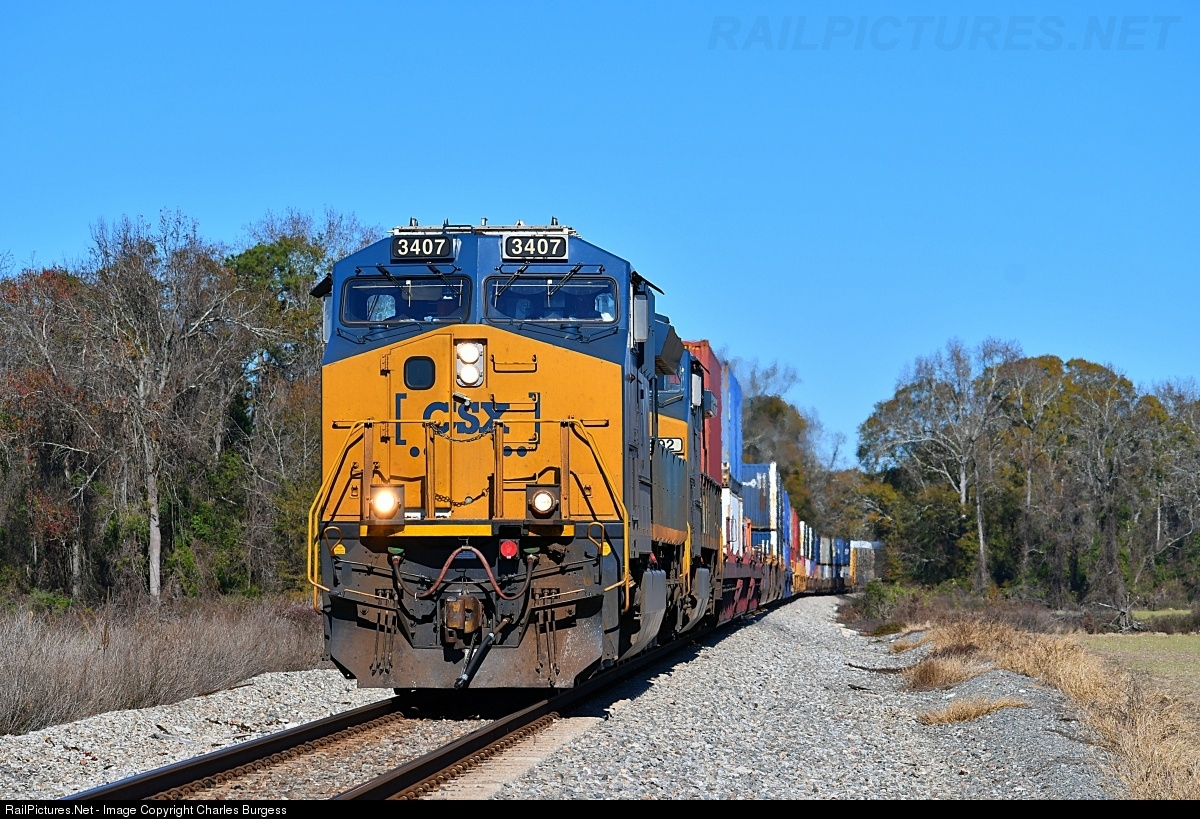 A southbound train of intermodal and autoracks rolls through rural Crisp County on a bright and sunny Saturday morning. This train originates in Louisville, Kentucky and picks up container traffic at Fairburn, Georgia before terminating in Baldwin, Florida.