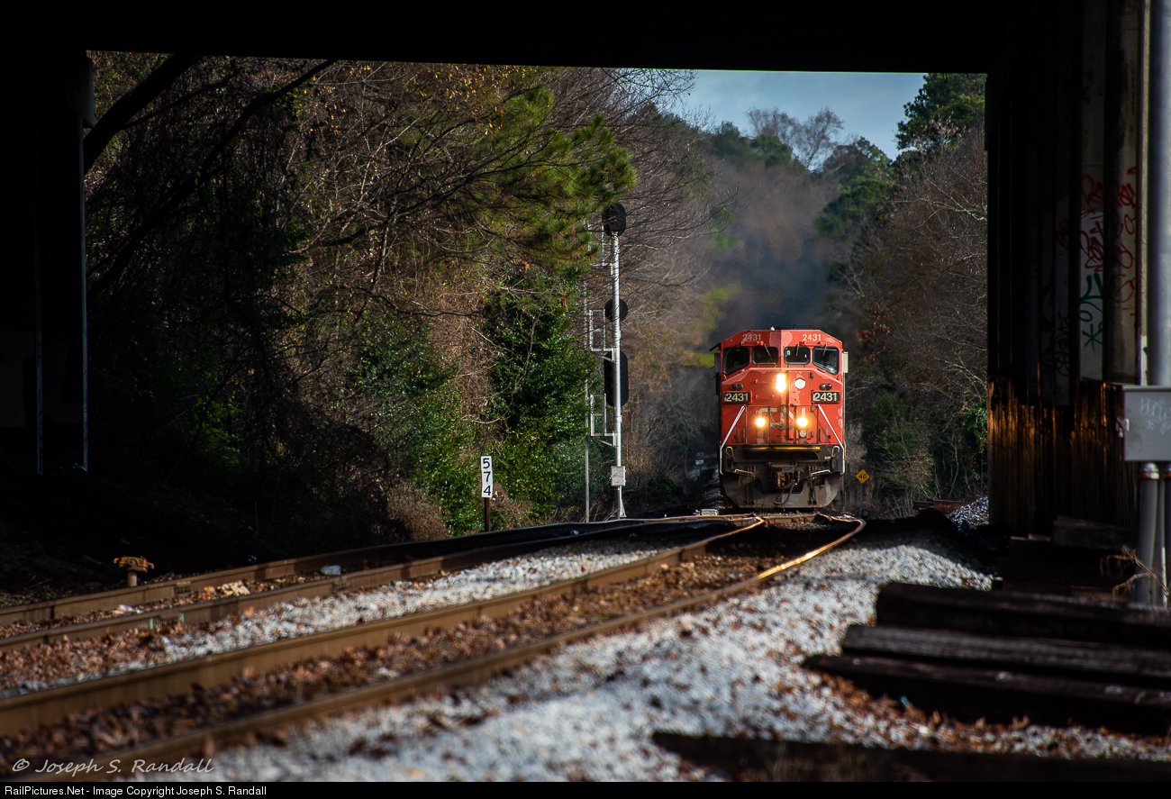 This is a perfect example of why it pays to keep others informed. After grabbing a few shots of K444 since it was sitting in the hole at SE Tucker waiting for a crew, I decided to head north towards the Etowah Sub to see if I could find out where W024 with an SD50-3 leading a SD40-2 was. Upon arriving at Emerson, one of the younger railfans I helped informed where K444 was had posted that the crew had shown up out of nowhere & was waiting for Q583 to clear up the single track before heading south. I quickly got off at that exit & quickly started heading back over 30 miles south, not knowing if Q583 was near them. Upon getting to East Switch just before Howell Yard, I get word that K444 just cleared the signal at SE Tucker. So I parked where I was & waited for them to come to me, not wanting to give Howell any chance of slapping another engine or wying the power to put the 2431 in a trailing position. Less than 15 minutes later, they come into view & I set myself up, hoping that the break in the clouds would hold. Here, we see K444 knocking down the East Switch signal as it's about to go under I-75. As it would turn out, I ended up getting the only sunny shot of this train that day, as it would end up sitting at Gilstrap the rest of the day waiting for a crew to take it to Etowah.