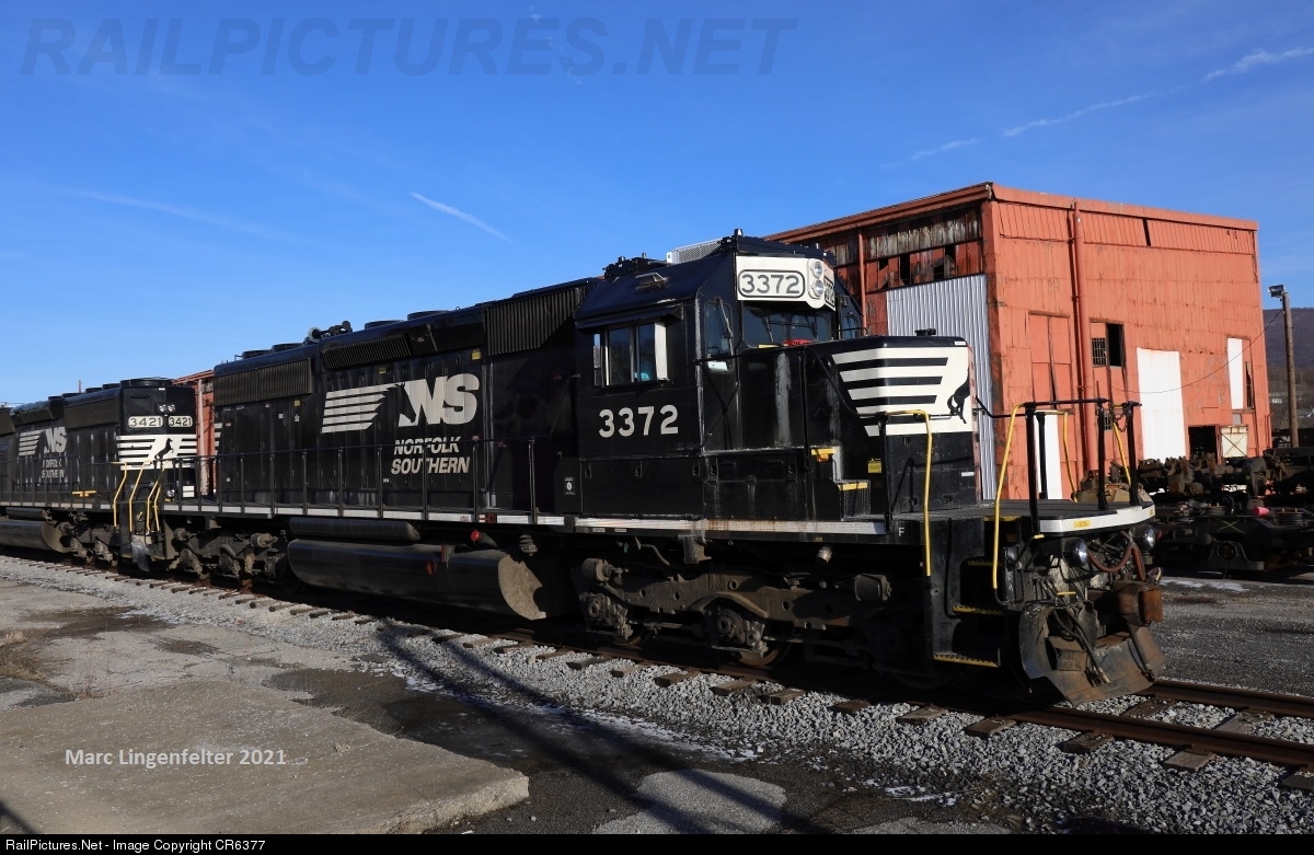 | NS 3372 sits outside the Juniata Shops after having PTC Work, waiting for it's next assignment, with sister 3421 behind. |