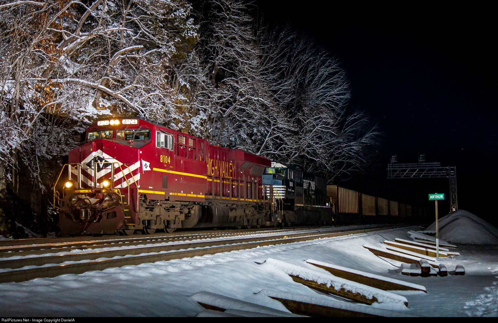 | Hopper train NS 745 slowly rolls west through control point Arthur on the Christiansburg district. Snow from the night before blankets the ground and provides some nice contrast for the red of the Lehigh Valley heritage unit. This train was on duty in Roanoke, Va at 12:45pm today, but didn't leave until after dark. |