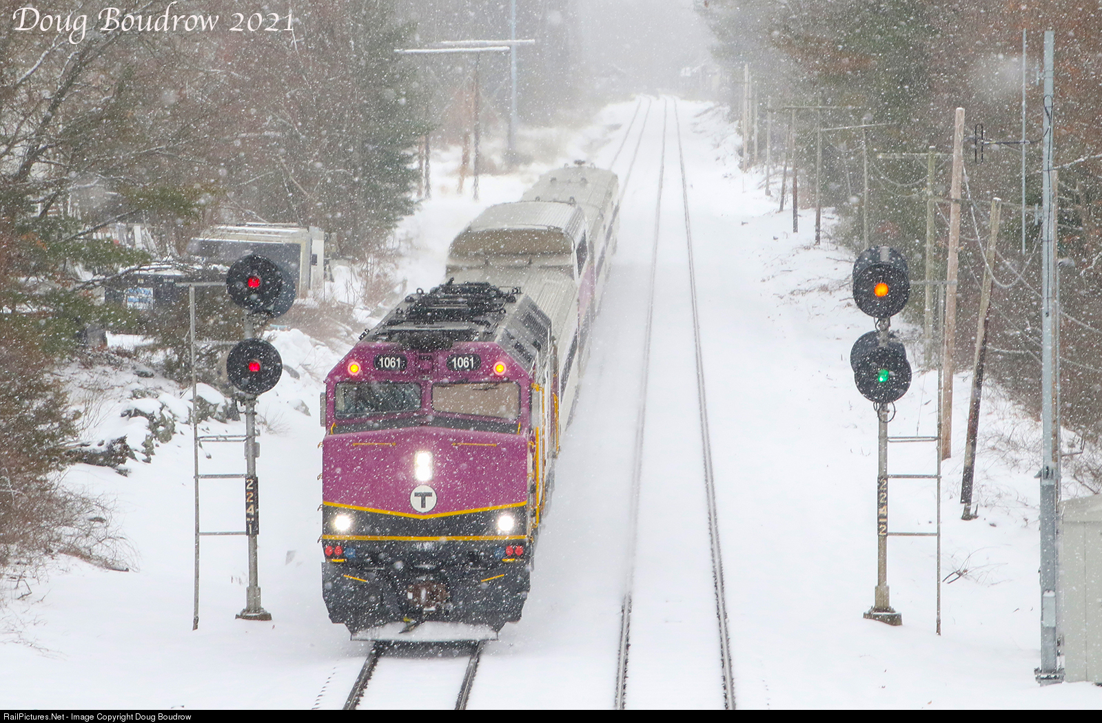 | With the PTC implementation continuing on the Lowell Line, the Boston & Maine searchlight signals are rumored to be retired this weekend. I had been procrastinating shooting here but was able to squeeze out a shot of. purple train in fresh snow before the signals fall. |