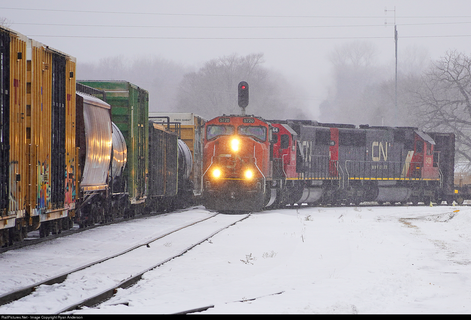 CN 5720, 5444, and 5438 pick up cars at the New Brighton Yard. Then they will connect back to the freight they got from Northtown Yard which is parked on the main line. Interesting to note, the crew must have wyed the engines at Shoreham as 5438 was leading when I left Northtown to beat the train to New Brighton.