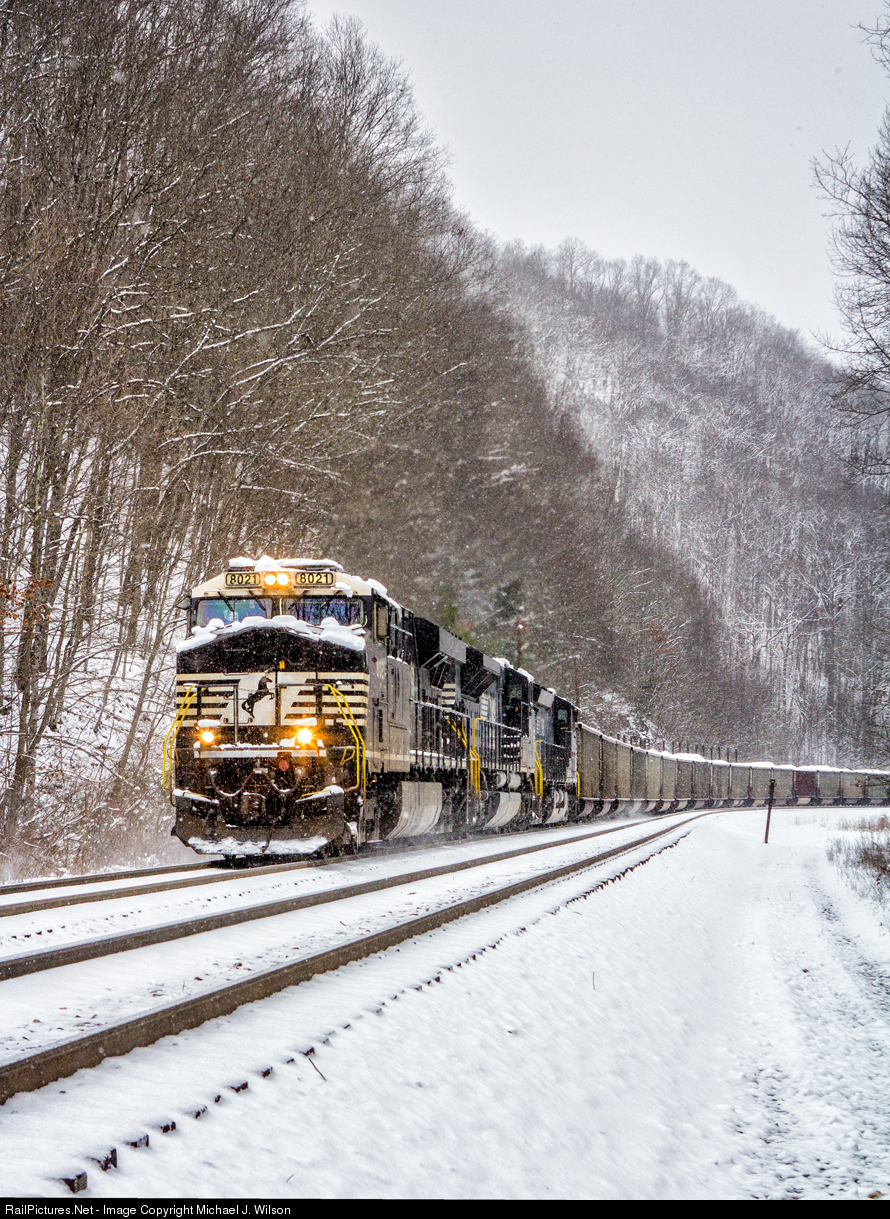 Norfolk Southern ES44AC #8021 is on her knees thundering east in Notch 8 outside of Maybeury, WV and Elkhorn Tunnel on January 28, 2021. Enroute to Bluefield, WV this heavy coal drag will be routed over the Whitethorne District to Roanoke and eventually the ports of Norfolk, VA for export.