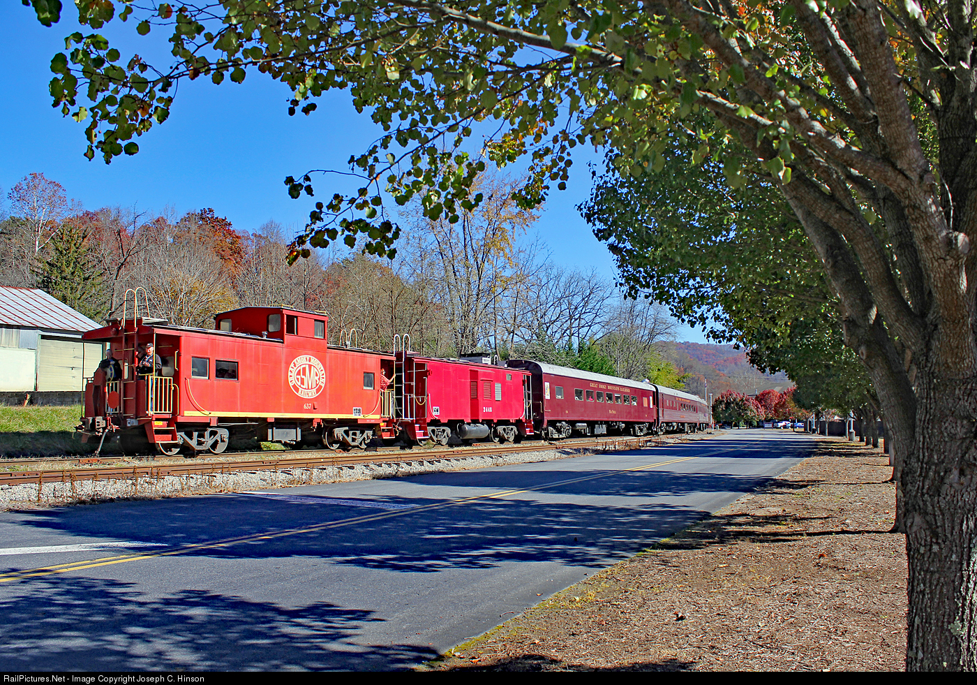 RailPictures.Net Photo: GSMR 637 Great Smoky Mountains Railroad caboose at Dillsboro, North Carolina by Joseph C. Hinson