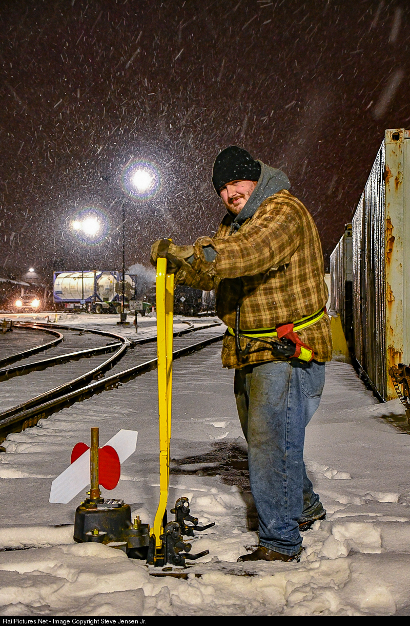The PU-2 Conductor braves the harsh winter elements to make sure the customers get their freight in the Pureland Industrial Complex