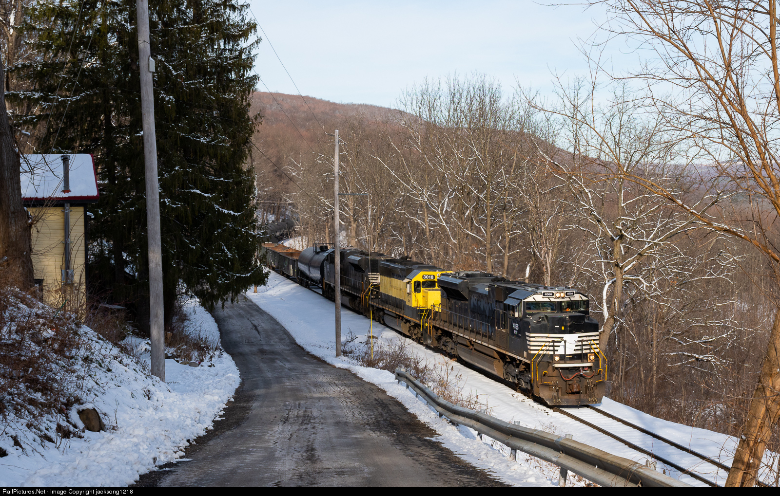 New York Susquehanna and Western train CL-1 works hard upgrade as it heads southbound through LaFayette, NY with the hills of Central NY in the background.