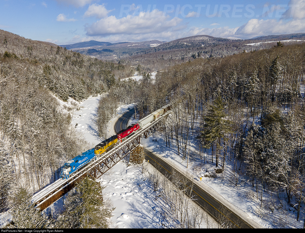 Anyways the GMRC 263 crosses over the infamous Cuttungsville trestle after a night of light snow fall.