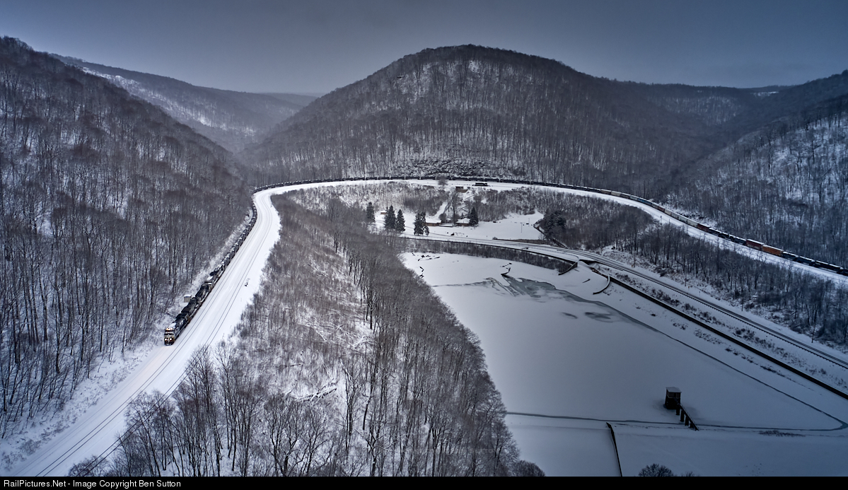 37A claws and grinds west around Horseshoe Curve in between periods of heavy snow which put down anywhere from a few inches up to a foot in places such as south of here in Somerset County. https://flic.kr/p/2kzXzfG