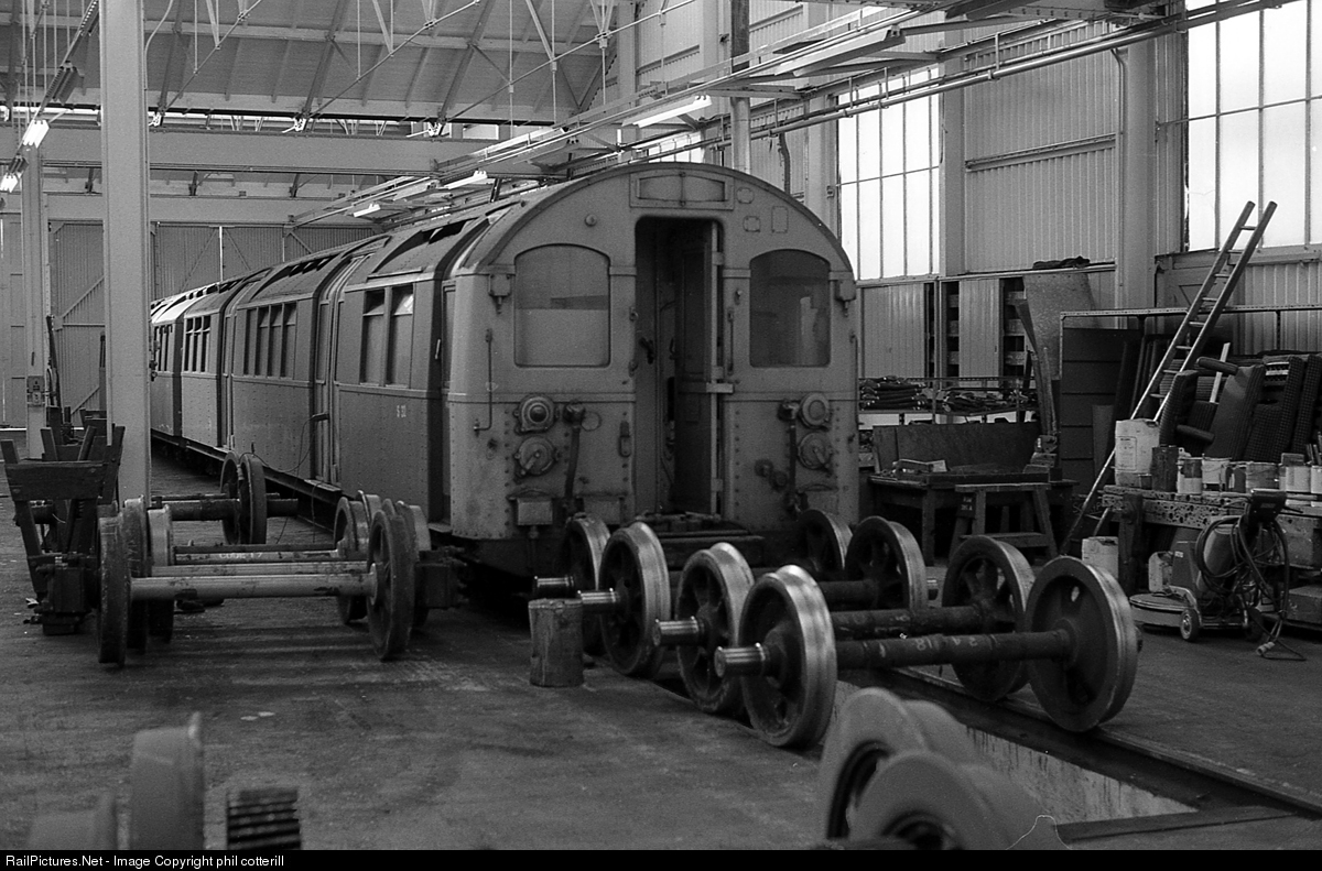 | These 1923 built units were used on the Isle of Wight from the 1960s until their replacement by newer 1938 built stock in 1992. Both types of unit formerly were used on the London underground system. Here is driving car 32 in the Islands own facility at Ryde in 1980. |