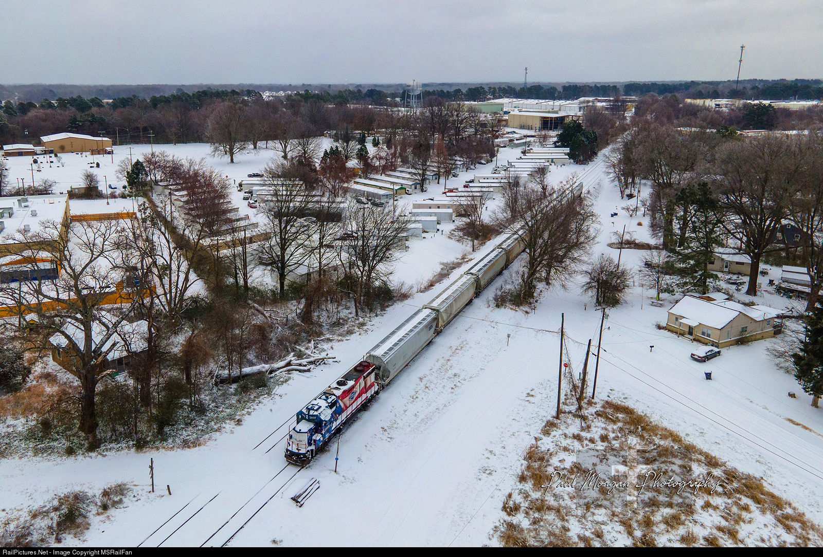 | Rare is it that Mississippi gets snow, especially 5-8 inches worth of it! I managed to get out and walk in it down to the tracks close to town and grab a shot of the Grenada Railway locomotive 3832 and a few cars. |