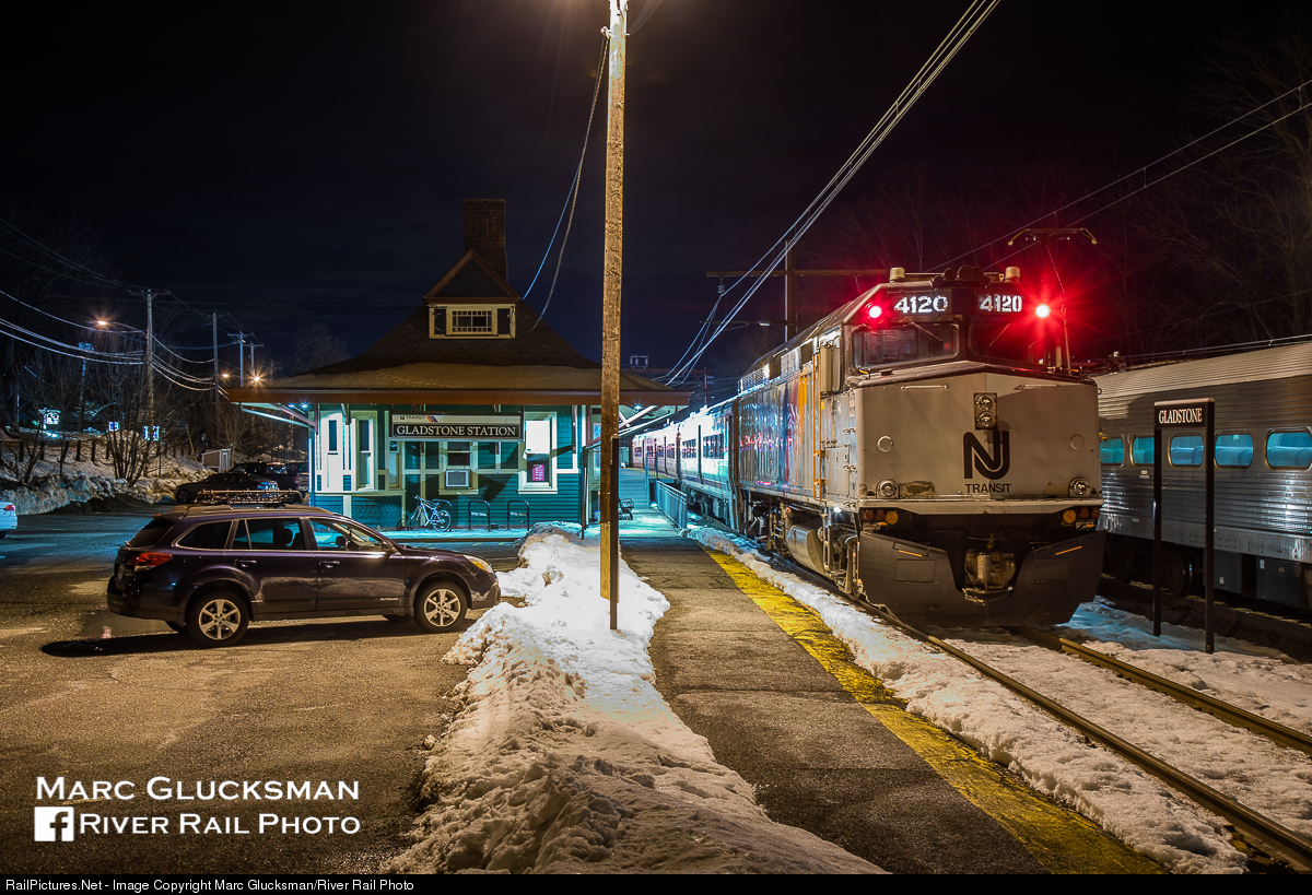 Glad in Gladstone. On the night of Tuesday, February 16, 2021, NJ TRANSIT Train 447 arrived at the station with NJTR 4120 (F40PH-2CAT) leading. This unit and sister 4119 have been making the rounds on the Hoboken Division after returning to passenger service in mid-2020. The former Delaware, Lackawanna, and Western Railroad is an original structure with modern amenities, built in 1891 and is still serving passengers today.