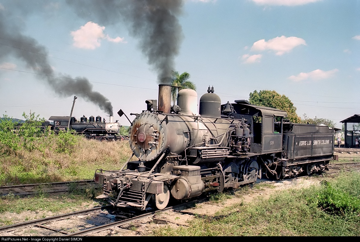 | The Minaz #1510, a Mogul built by Alco in 1907, is shunting in the Boris Luis Santa Coloma yard. The Vulcan #1806 can be seen in the back. |