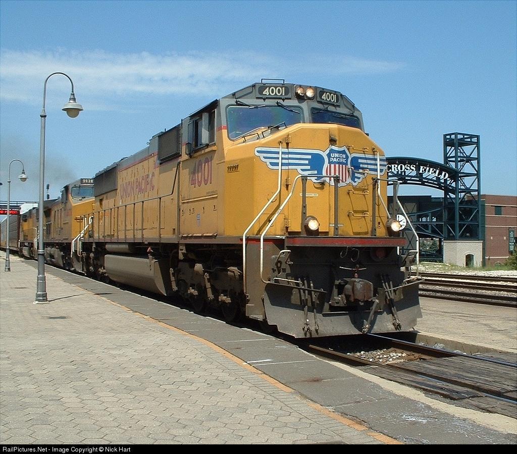 | UP 4001 SD70M, with C40-8W, and SD40-2 UP, leading a Westbound AutoRack. |