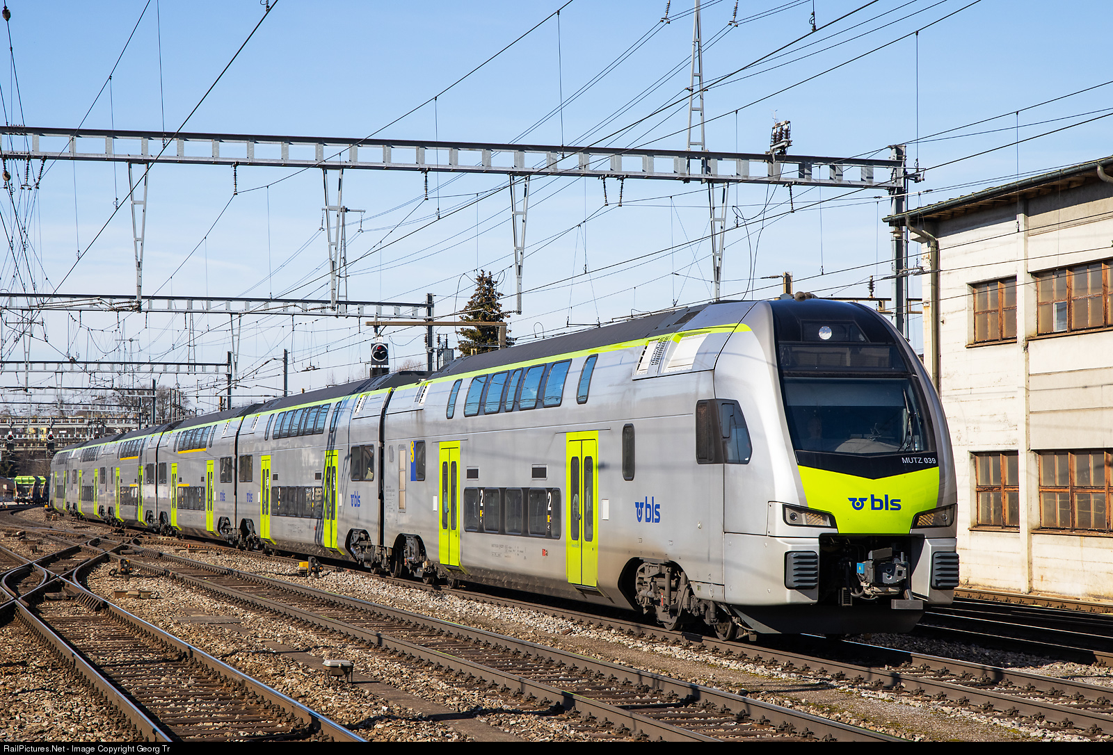 | Since change of timetable in december 2020, the BLS took over the former Regio Express, now Inter Regio line IR 17 between Berne and Olten via Burgdorf-Herzogenbuchsee-Langenthal from the SBB. New six car doubledeck train "MUTZ" RABe 515 # 039 of the BLS (built by Stadler Rail in 2020, last of the series of 6 long trains) is entering Burgdorf, running train IR 2819 of the IR 17 line from Berne to Olten. |