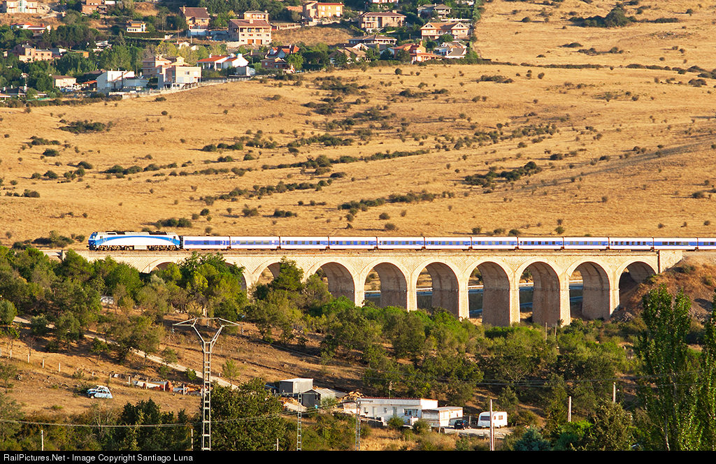 TrenHotel Madrid-Paris crossing the bridge named "Puente de los once ojos".