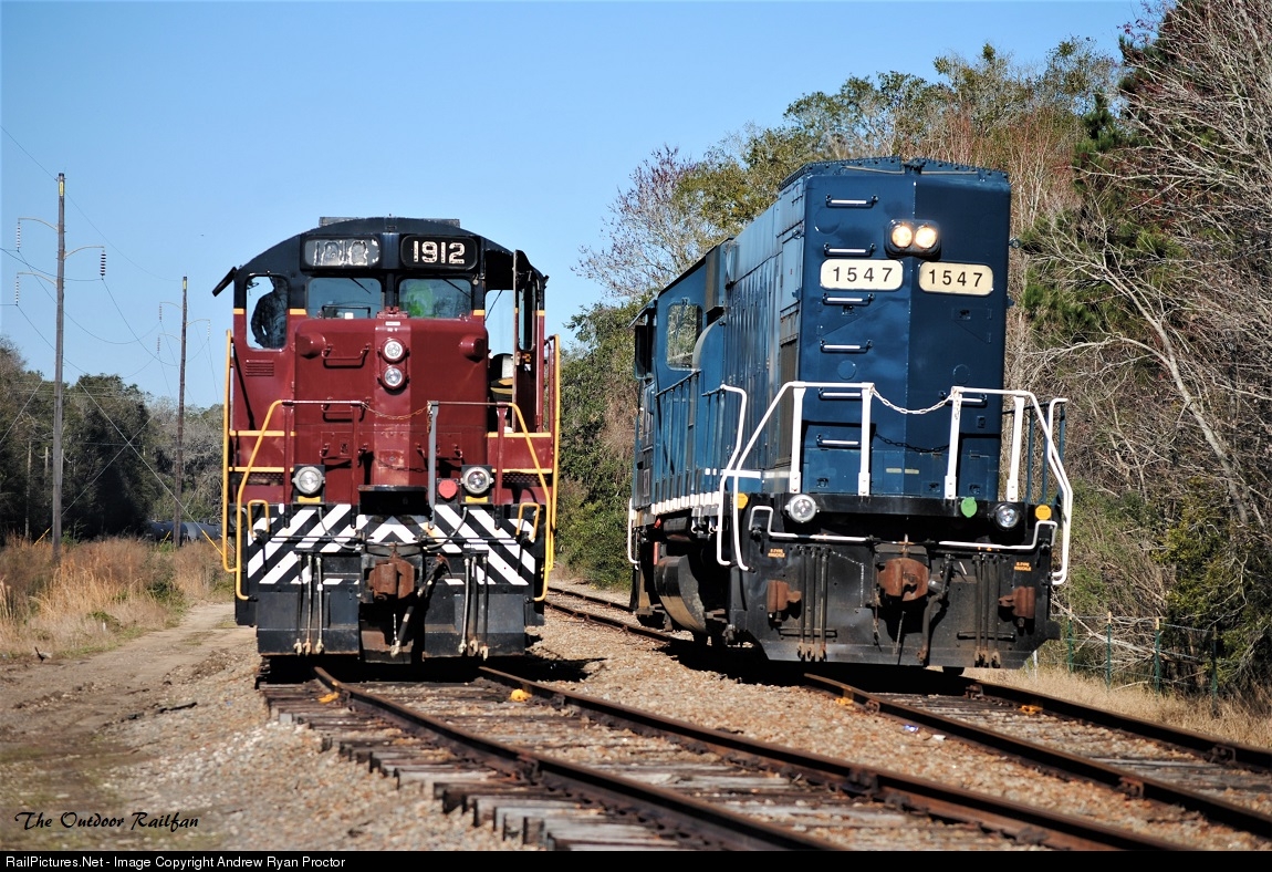 | TVRM 1912 awaits instructions to moved ahead 5 cars to make a cut and get ready to shuttle passengers to and from St. Mary's to Kingsland, Georgia all day on this cold windy sunny day. |
