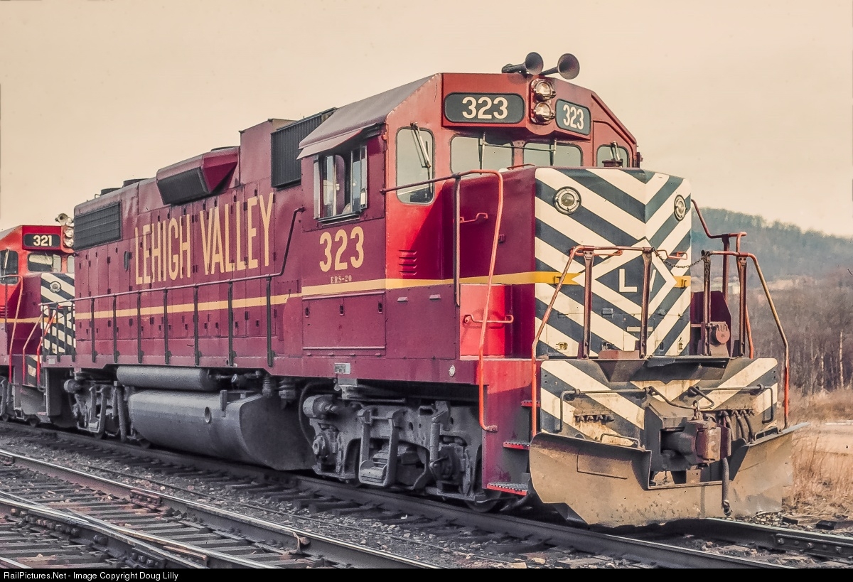 During a visit to Lehighton, Pennsylvania, we found three light Lehigh Valley GP38-2’s idling on one of the main tracks. LV 323 was built in November, 1972, and after a long career on the Delaware & Hudson, survives as CP 7310.