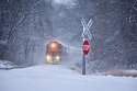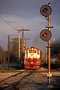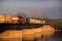 Grand Rapids Eastern engine #2104 is about to cross Alta Dale road just west of Ada, Michigan with a string of loaded wheat cars for King Milling in Lowell.