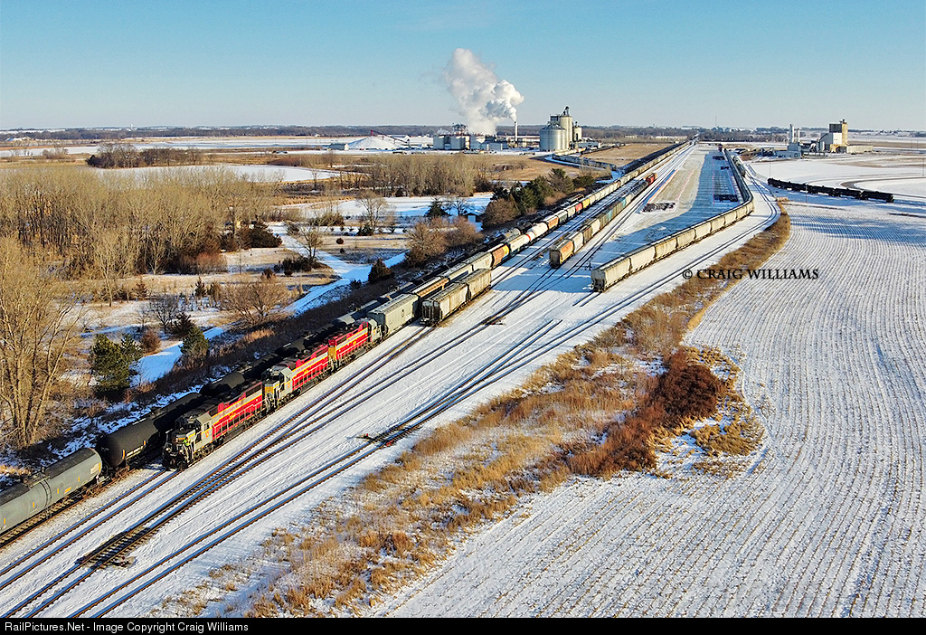 | The Iowa Northern's Butler Facility is growing into quite a place north of Shell Rock. The ethanol plant was the 1st thing to come here around 2008, and now there are a few more places, and more building soon. The North Crew is about to stop and do some work on their way north from Waterloo to Manly. The Iowa Northern does an awesome job getting more and more business as they build this railroad. |