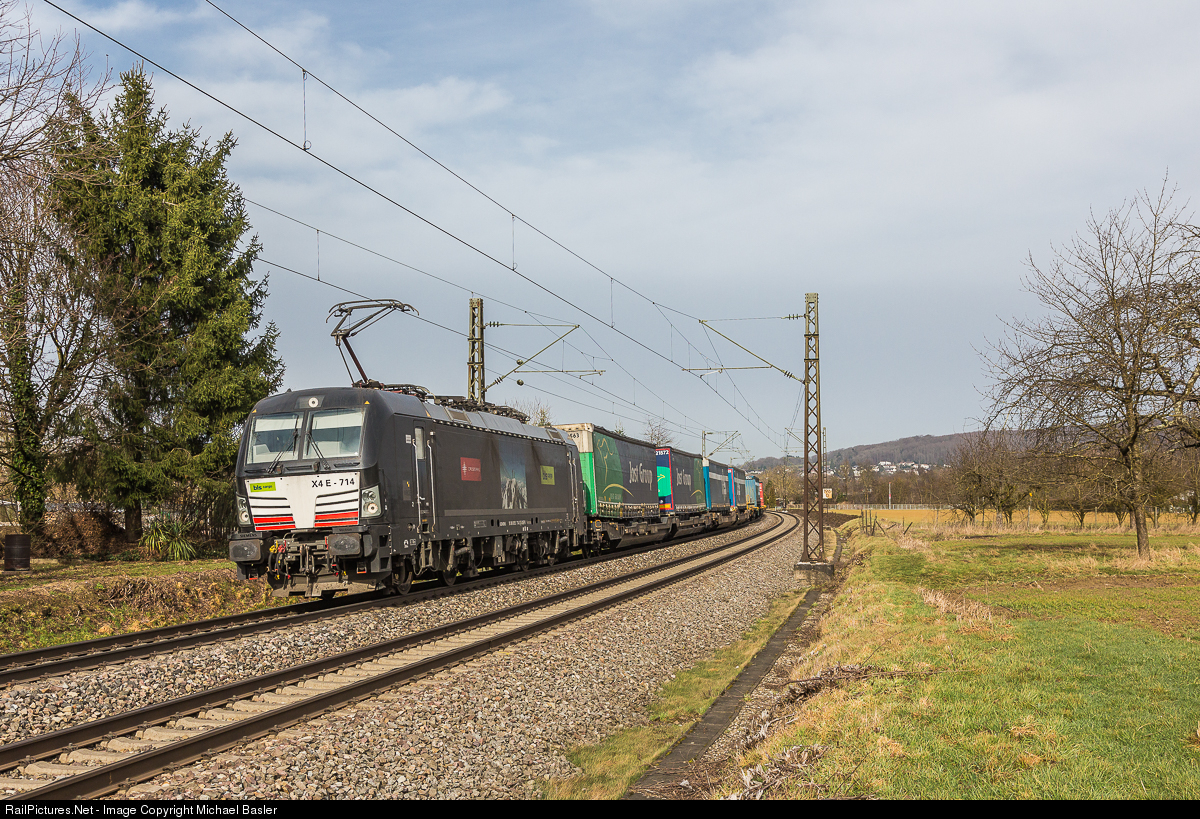 On a sunny morning in spring-like February 193 714 BLS Cargo lays down in the bend towards Freiburg near Kollmarsreute.