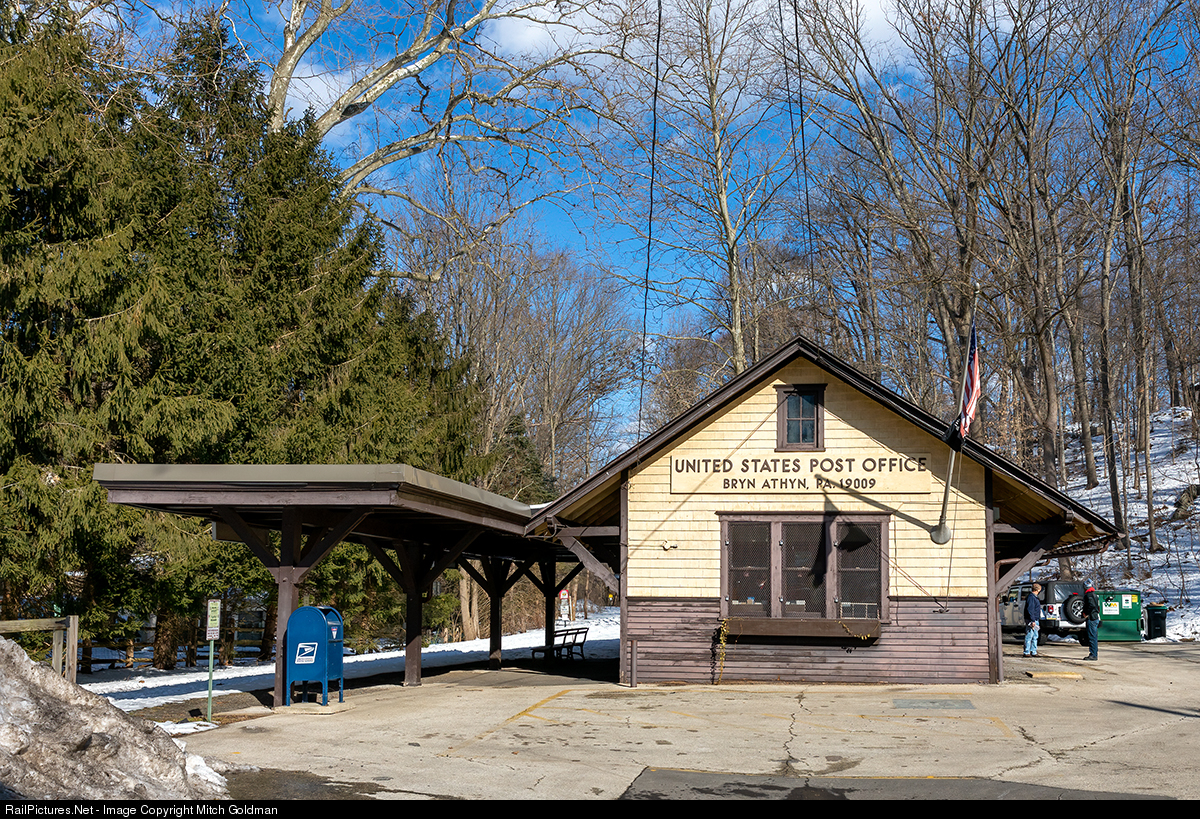 Reading's Bryn Athyn StationBuilt by the Reading Railroad in 1902, this station sits near the Pennypack Creek in Bryn Athyn and was part of Reading Company's Newtown Branch. It later served as SEPTA's Fox Chase/Newtown Line until January 18, 1983 when service in the diesel-only territory north of Fox Chase was cancelled. Today, the station is served by the US Post Office and the former right of way, part of the Pennypack rail trail.