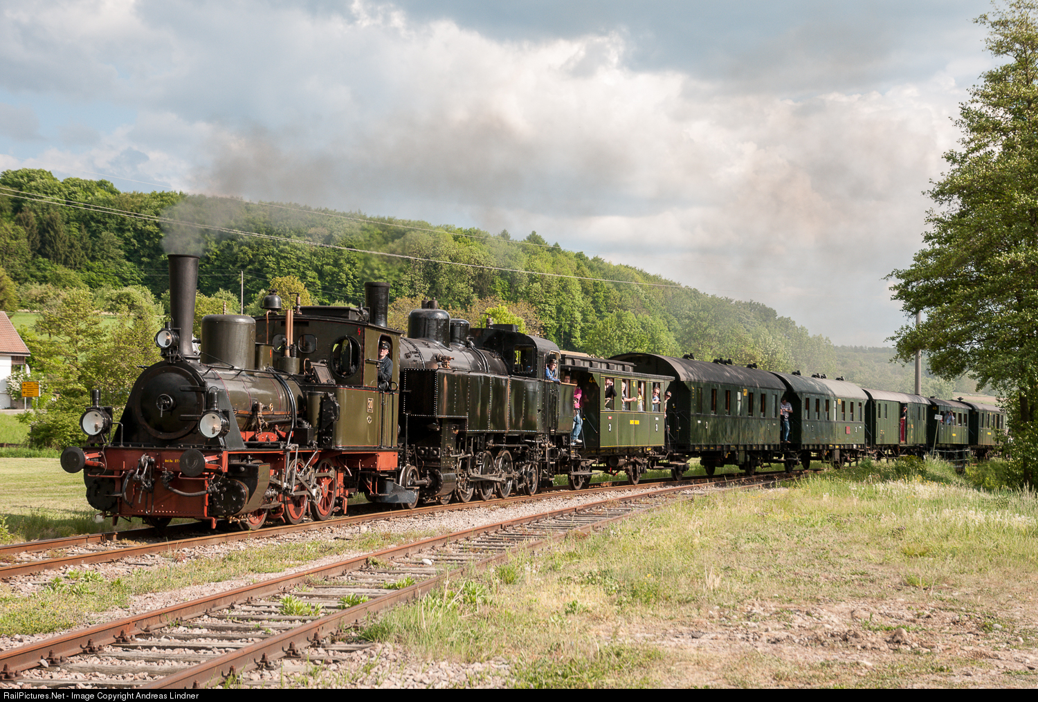 | The first of May is the first day of the year on which the Kandertal Railway starts its museum operation. Here in the picture as a duo: T3 locomotive 20 from Borsig / Berlin Tegel from 1904 and the former approximately 25 years younger Austrian 378.78. The latter has meanwhile gone to another museum railroad. |