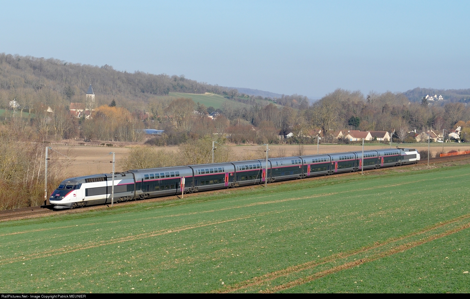 | Tgv Le Havre Marseille is passing in the nice Mauldre Valley, after a stop in the station of Mantes la Jolie.