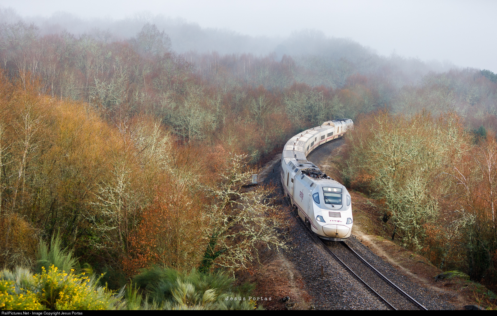 | Getting out a fog section between Baños de Molgas and Vilar de Barrio, alvia service 04064 continue on its way from Ferrol to Madrid-Chamartín. |