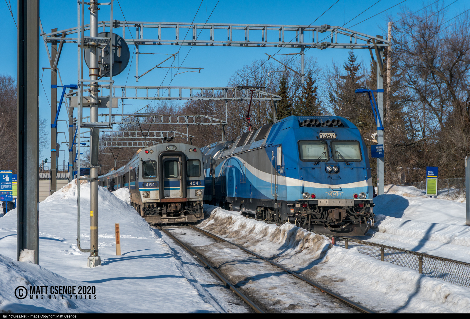Deux-Montagnes Fleet. Two Deux-Montagnes Line trains sit at the namesake terminus, representing all of the equipment used on the line. The train at left is MR-90 EMUs (Bombardier, 1994-1995), and at right is ALP45-DP locomotives (Bombardier, 2010-2012) with bi-level coaches. This was the only electrified Exo line, and this equipment is now out of a job since the line shut down for the REM project. The dual-mode ALPs and bi-level coaches can be used on other lines, but the MR-90s are destined for retirement.