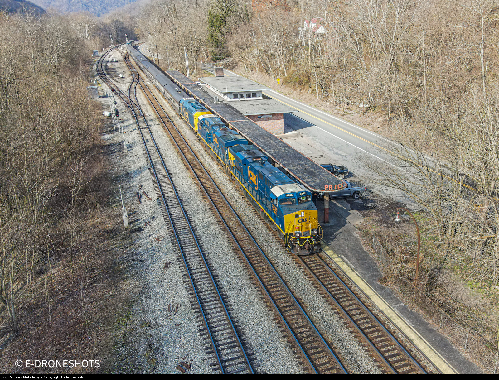 RailPictures.Net Photo: CSXT 3233 CSX Transportation (CSXT) GE ES44AH at Prince, West Virginia by E-droneshots
