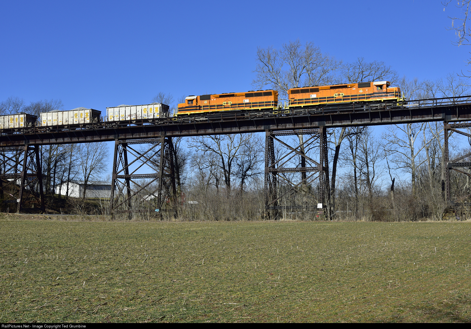 “The Bridge on the Creek Little Pipe” MMID’s UBST, with crushed stone loads from the Barrick Quarry, crosses the Little Pipe Creek Trestle at 09:44 on March 8, 2021.