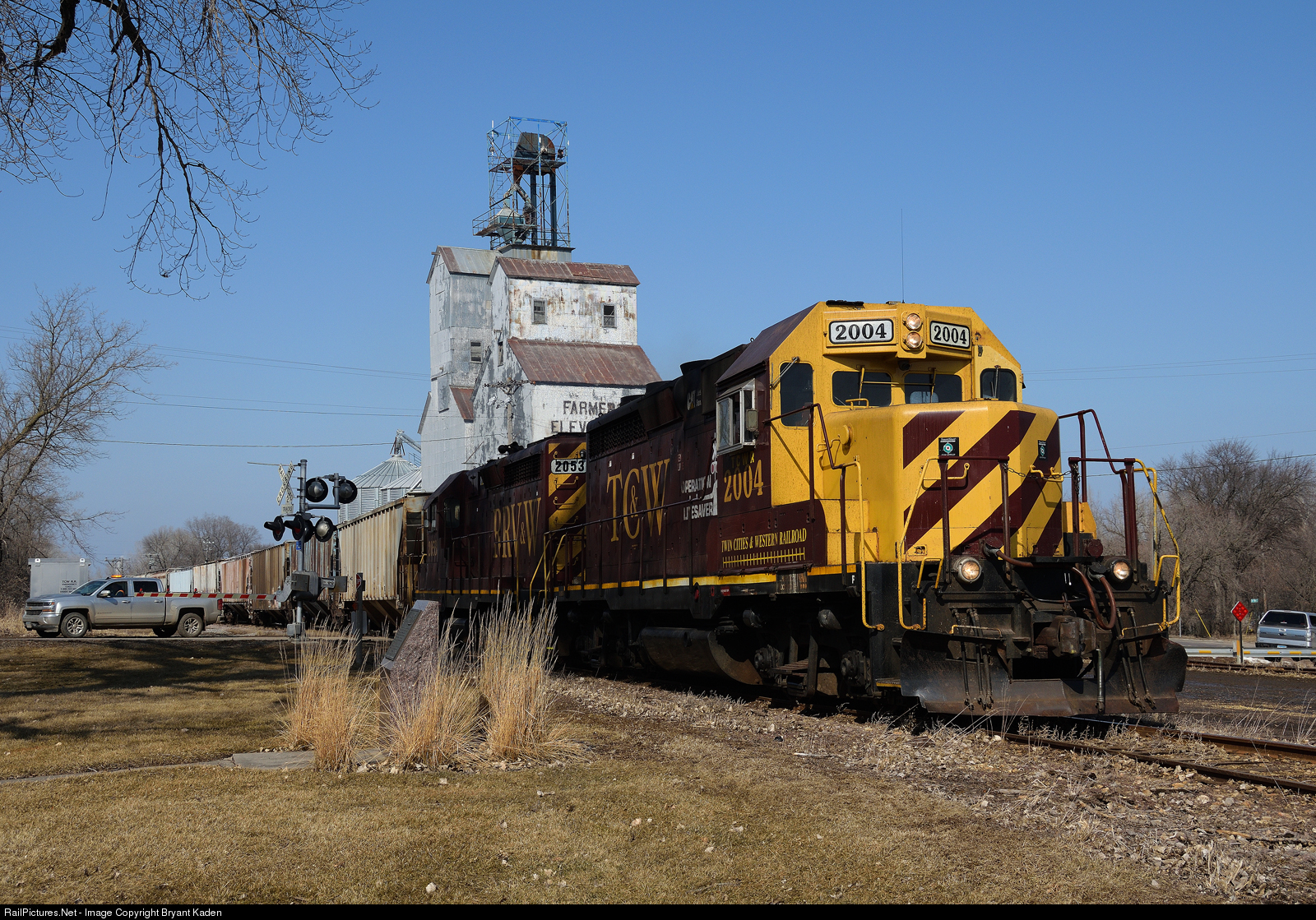 A Twin Cities & Western train gets underway after doing some work at the elevator in North Redwood, MN. The small stone marker includes a plaque honoring Richard W. Sears of Sears & Roebuck fame. He was the depot agent here in the late 1800's. The story goes that a shipment of watches to a local wholesaler was rejected. Sears inquired into how much they cost. He realized that if he bought the watches himself and sold them to railroad employees, he would make a nice profit. This plan was so successful that he moved to Minneapolis, started a mail-order watch sales and repair business, and the rest is history.