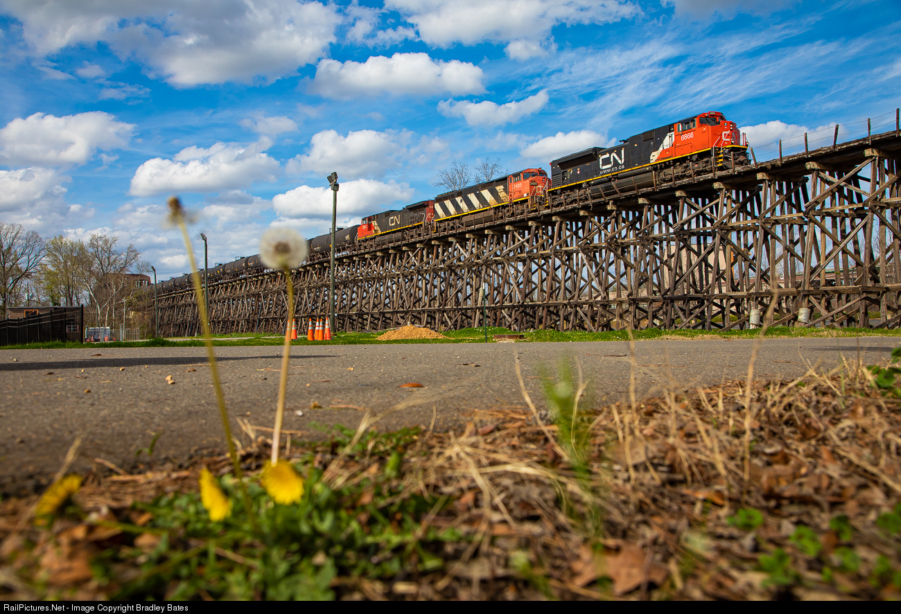 A CN Oil Train crosses over the Black Warrior River Trestle on the Alabama Southern Railroad in Tuscaloosa, AL., On their way to Hunt Oil. These Oil Trains come off the Canadian National at Jackson, MS and run via the KCS east to Meridian and then north up to Artesia, MS. From there they run via the Alabama Southern to Tuscaloosa, AL.