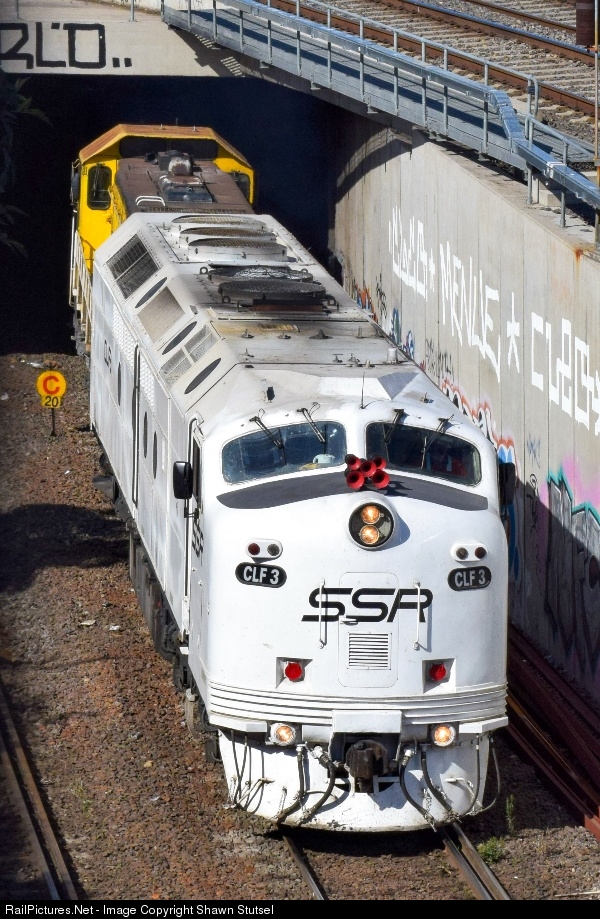 SSR's CLF3 (Nicknamed the Space Ghost) leads 4917, 48s28, 48s36, S311 and GM10 out of the Bunbury Street Tunnel, Footscray with 3MC3, Empty Grain, heading for Southern N.S.W...
