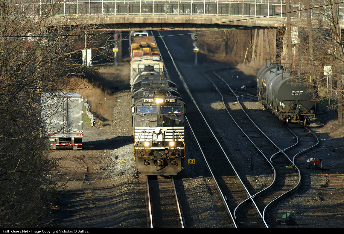 | The Conrail North Jersey Dispatcher takes advantage of a schedule opening during the busy AM rush hour to squeeze NS 18G by on Conrail Lehigh Line Track #2. Behind the leader are NS 6910 (SD60E; rebuilt from SD60 NS 6581) and NS 9120 (C44-9W; later rebuilt in August of 2020 to become AC44C6M NS 4369). |