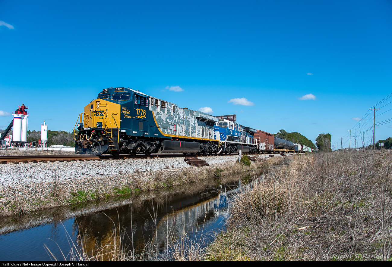CSX Q409 heads south on the Charleston Subdivision for Waycross via Savannah as it passes MP450 on the former Atlantic Coast Line’s “A Line.” Powering the train on this day is the “Hardin Triplets,” CSX’s Spirit engines which honor the armed forces (the 1776; leading), law enforcement (3194; trailing), & first responders (911; mid-train DPU). These engines were the talk of the week after surprisingly being brought out of a year & a half long period of sitting in storage in Waycross after being tagged for “Special Events Only” a week earlier when they were surprisingly assigned to take Q410 north to Selkirk, NY. Not knowing how long they would stay out in service, I made sure to get out & get them while I could when they came back south a week later on 410’s counterpart.