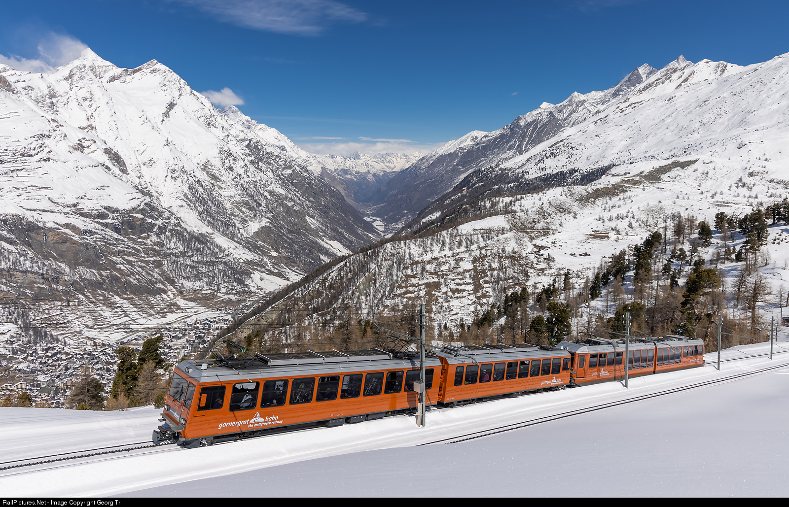 RailPictures.Net Photo: 3054, 3084 GGB - Gornergratbahn Bhe 4/8, Bhe 4/6 at Zermatt, Switzerland by Georg Trüb