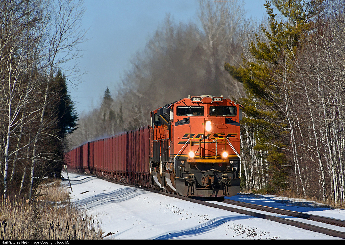 | Screaming through the woods of northern Minnesota with taconite pellets from Hibbing Taconite headed to their yard and dock at Allouez, Wisconsin. |