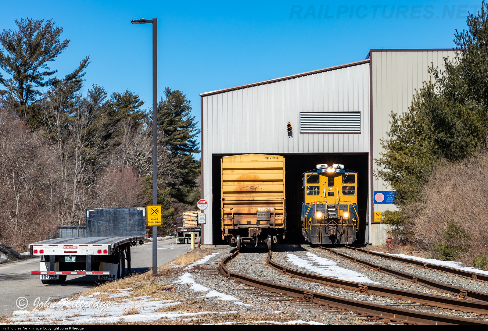 Recently, the Grafton & Upton Railroad took over customers on MBTA's Milford Running Track between Forge Park in Franklin and Milford, MA. Here, G&U MP15AC 1158, of obvious CSX heritage, pops out of one of two buildings at BluLynx in Bellingham as it switches loaded cars for empties before returning to Grafton.