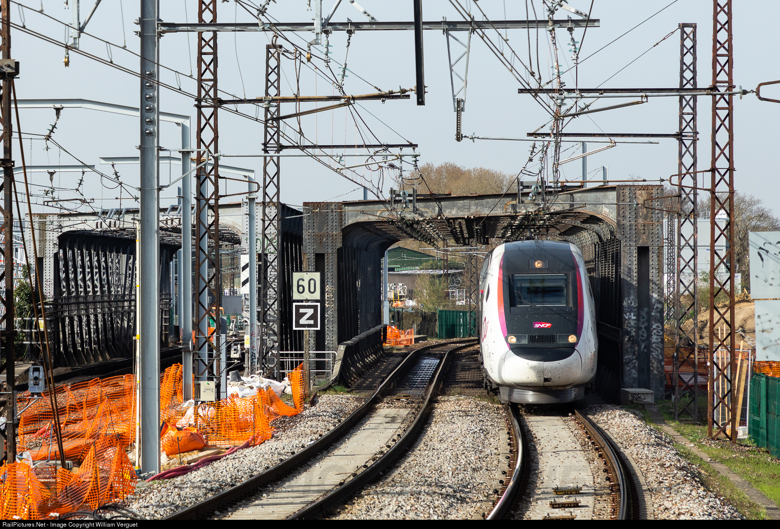 The daily TGV high-speed train Le Havre - Marseille crosses the Pont de Chartres, a metal bridge built in 1923, south of the Massy-Verrières station. This double bridge, that spans the current Atlantic high-speed line, will be replaced by a concrete structure this summer.