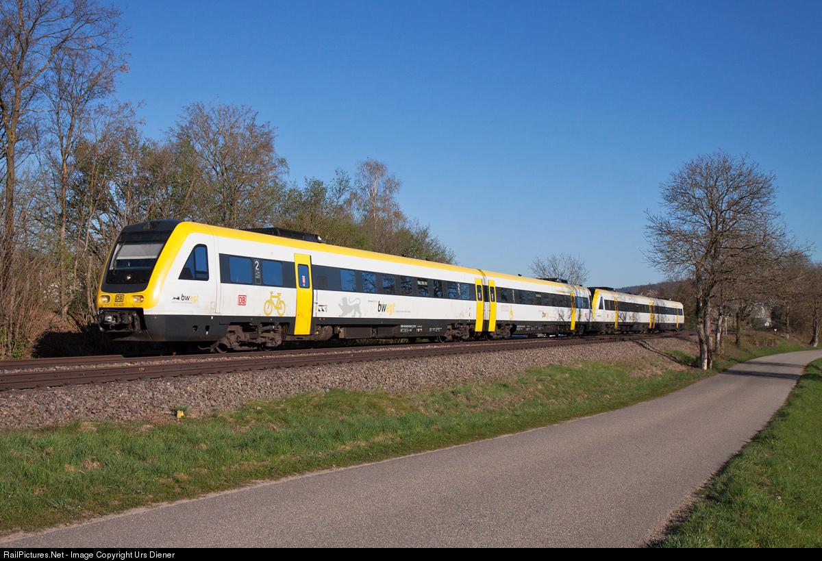 | The two diesel tilting trainsets 612 129/629 and 612 136/636, both painted in the Colors of the province Baden-Württemberg, are on the way from Basel Bad Bf to Ulm. |