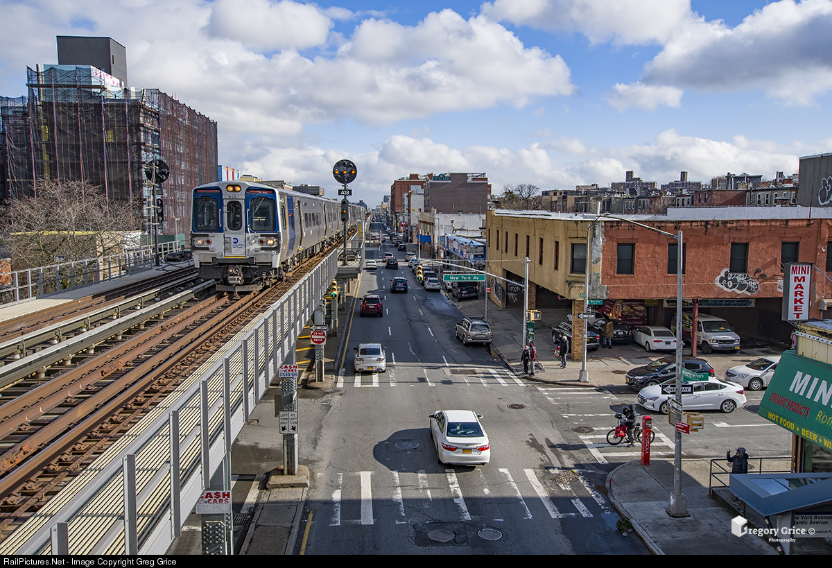 A westbound Long Island Rail Road train runs down Track 2 on the Atlantic Branch Viaduct while heading towards Atlantic Terminal in Brooklyn, NY. |