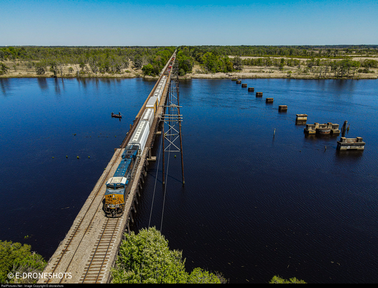 Rolling over the Ogeechee River in Richmond Hill, CSX train Q401 is at track speed on its journey to Waycross.