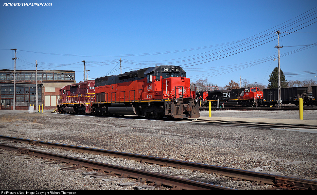 | Bessemer & Lake Erie units 905 & 862 rest in the early afternoon sun of a cool March day. These two units were a nice treat while visiting the Greenville area. The Bessemer continues to fade more and more into the Canadian National identity as time goes on. |